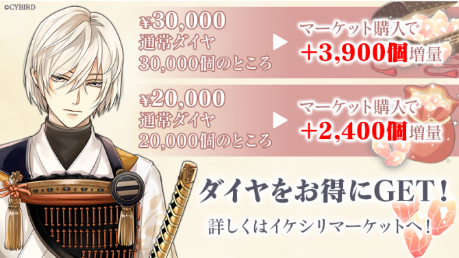 イケシリマーケットを利用すればゲーム内で購入するよりも、最大13%、3900個のおまけダイヤがついてきます。